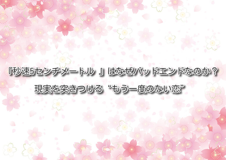 本記事では、『秒速5センチメートル 』が描くリアルな愛の終わりをテーマに、物語の構成、登場人物の心理、そしてなぜ「バッドエンド」と呼ばれるのかを丁寧に掘り下げていきます。